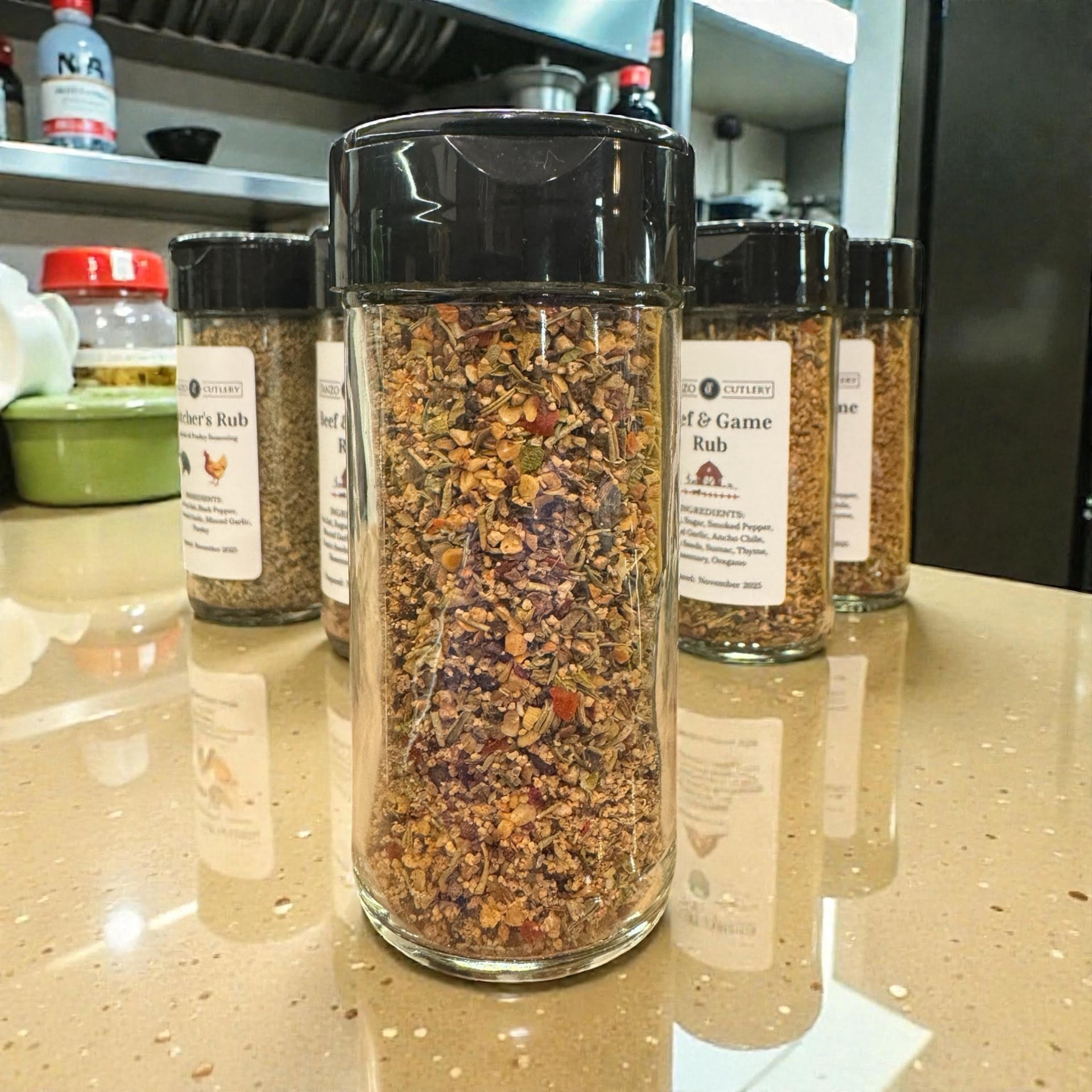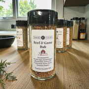 Elevate your culinary creations with our Beef & Game Rub, expertly crafted for those who seek bold, natural flavors. This versatile seasoning blend is perfect for enhancing the rich taste of beef, succulent ribs, and game meats like elk and venison.