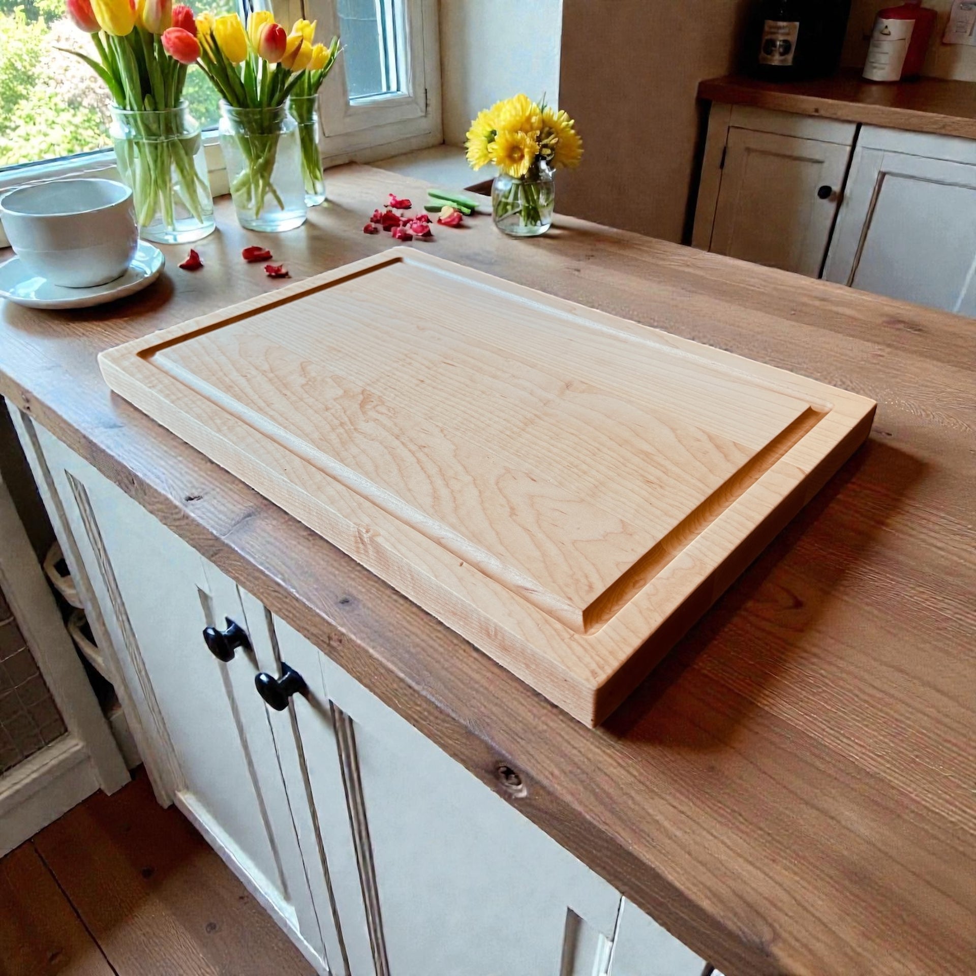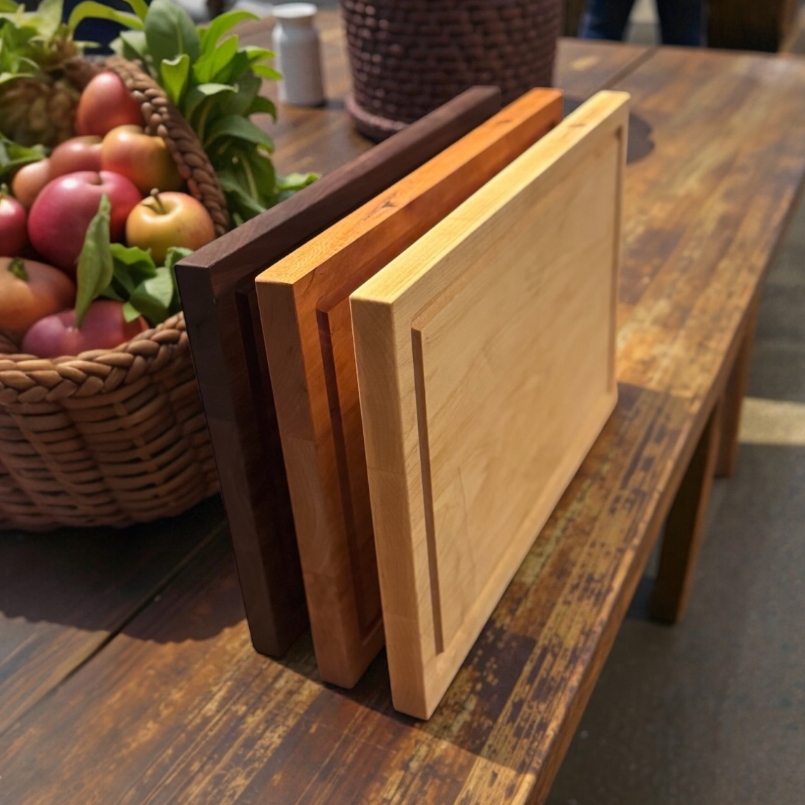 Maple is the gold standard of cutting boards. It’s tight, fine grain creates a naturally bacteriostatic surface meaning it inherently resists bacterial growth. Maple’s hardness protects your knife edge from degradation while being forgiving enough to extend blade life. It’s pale, elegant appearance provides a timeless aesthetic that never goes out of style. When you choose maple, you’re choosing the same wood preferred by professional kitchens and culinary schools worldwide.