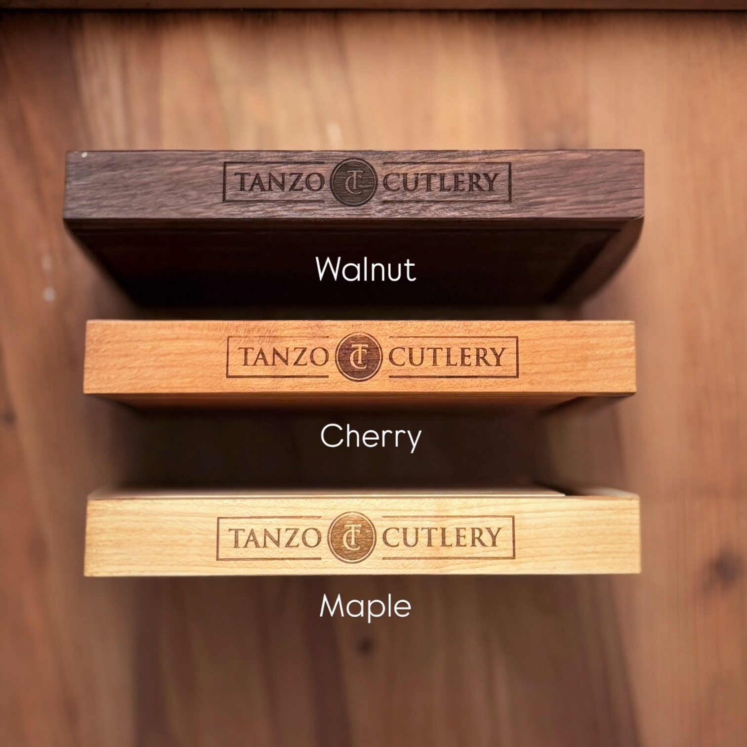 Three Woods. Three Characteristics. Three Excellent Choices. Tanzo Cutlery offer's three premium domestic hardwoods, each selected for specific qualities that make them the finest cutting board materials in the world: